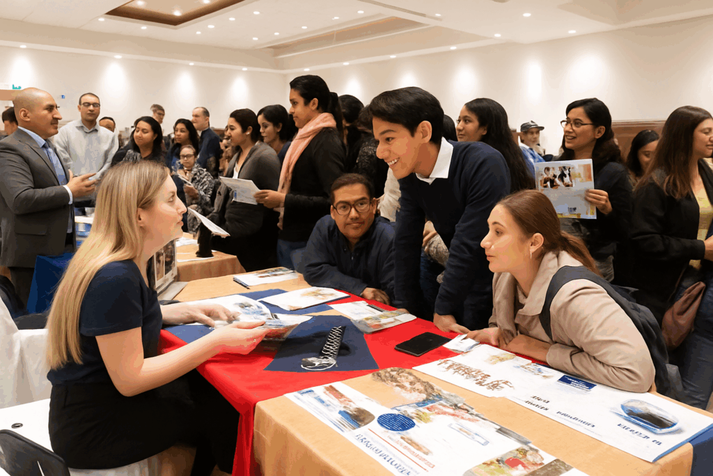 The events are held at hotel venues, where each institution is provided with its own table to display materials and engage directly with students and parents. Depending on the city, the event duration ranges from 2 to 4 hours.